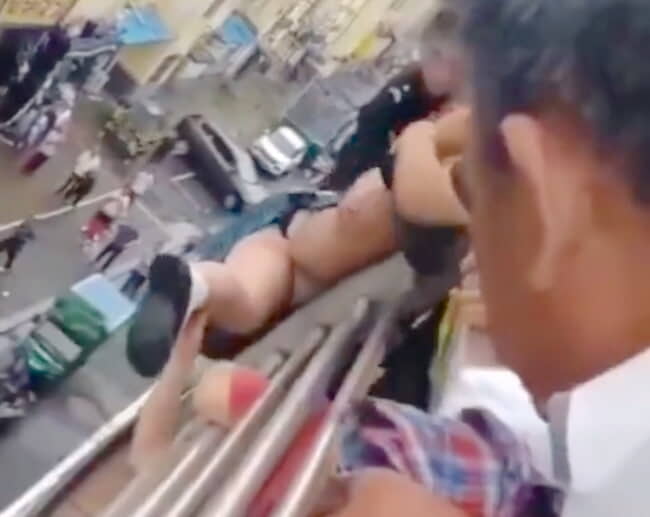 gif_animation 中国にて、飛び降り自殺をしようとしていた女子高生が間一髪救出されるも、ずっとパンツ丸見えになってしまう・・・という動画がなぜか話題になっているもの。