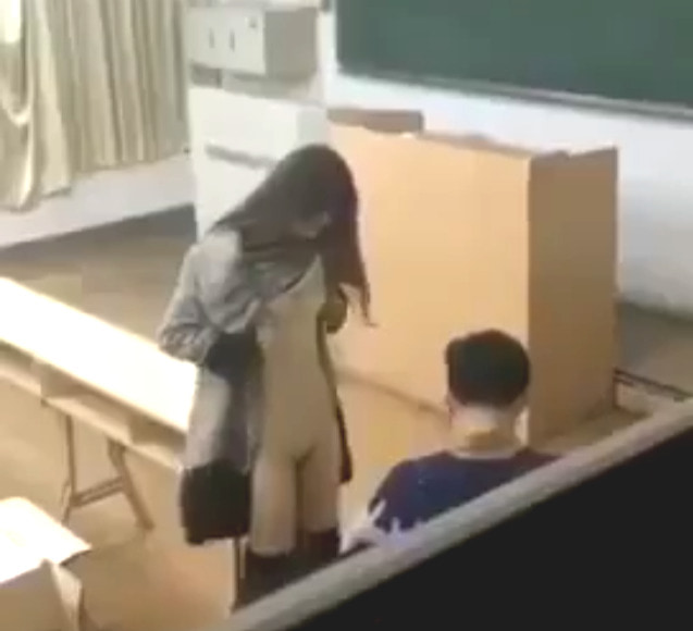 gif_animation 国は不明ですがアジアにて、女教師が、放課後の教室で裸になって男子生徒を誘惑、その後抱きつく ”淫行事件” の盗撮動画(おそらくは別の生徒による撮影)…。