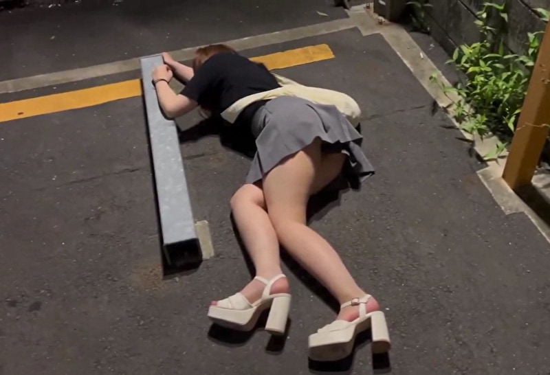 【動画】渋谷の駐車場で寝てるエロい女の子、その日中にレ●プされそうだと話題に