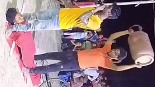 gif_animation インドにて、自称 ”不死身の人間” の路上パフォーマンス。しかしそれは度が過ぎていたようで、金属製のボンベを胸部に落とされ死んでしまう・・・事故動画。