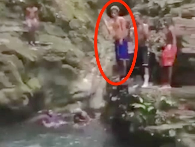gif_animation 南米にて、川で遊んでる陽キャ男女グループの1人が ”ありえない死に方” する衝撃の瞬間。飛び込みの失敗でも溺死でもなく、落石が頭部に直撃…。その後死亡した。