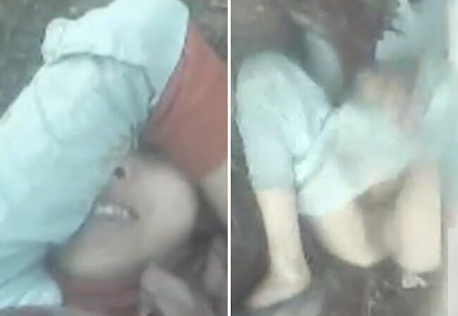 国は不明ですがおそらくは ”レイプ大国” インドより? 男2人に誘拐された10代少女が、泣いて慈悲を乞うも容赦なく挿入されているレイプ動画。誰もいない野外で。