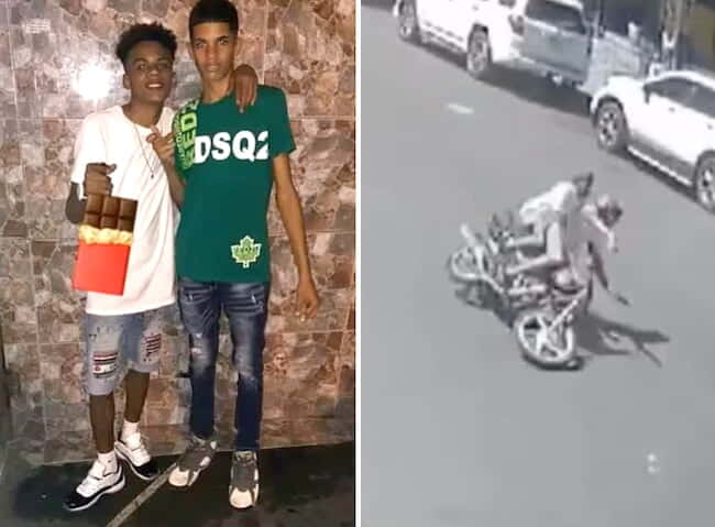 gif_animation ドミニカ共和国にて、バイクで二人乗りしたままウィリー走行するなどイキリ運転してたヤンキー高校生2人が、一瞬で ”地獄行き” になる衝撃映像。即死であった。
