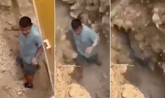 gif_animation 海外にて、採掘現場の作業員が突然の土砂崩れによって生き埋めにされ、そのまま還らぬ人になる瞬間が怖すぎる…。その後死体となって掘り出されたとの事。