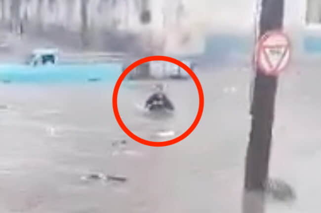 gif_animation キューバにて、洪水により街中が冠水。テンションが上がり水の中ではしゃぐ小学生(とされる少年)が、一瞬でマンホールに吸い込まれ死亡する(というより未だ見つかっておらず生存はほぼ絶望的)恐怖動画。一応【閲覧注意】。