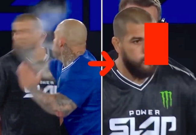 gif_animation 海外で流行中のビンタ大会(パワースラップ)で過去最大とも言われる ”放送事故” が発生し話題に。1人の選手がビンタした瞬間、一瞬で相手選手の顔面が崩壊してしまう恐怖動画。一体何が起こった…?