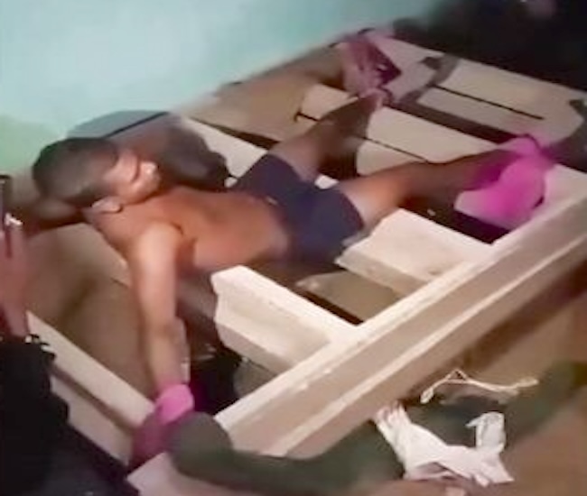 gif_animation アフリカにて、常人では思いつかなそうな新たな拷問「人間アイロン」が ”これ耐えられる奴ガチでいないだろ” と話題になっている衝撃動画。おそらくは罪人が民衆に捕まり行われたものと思われる。