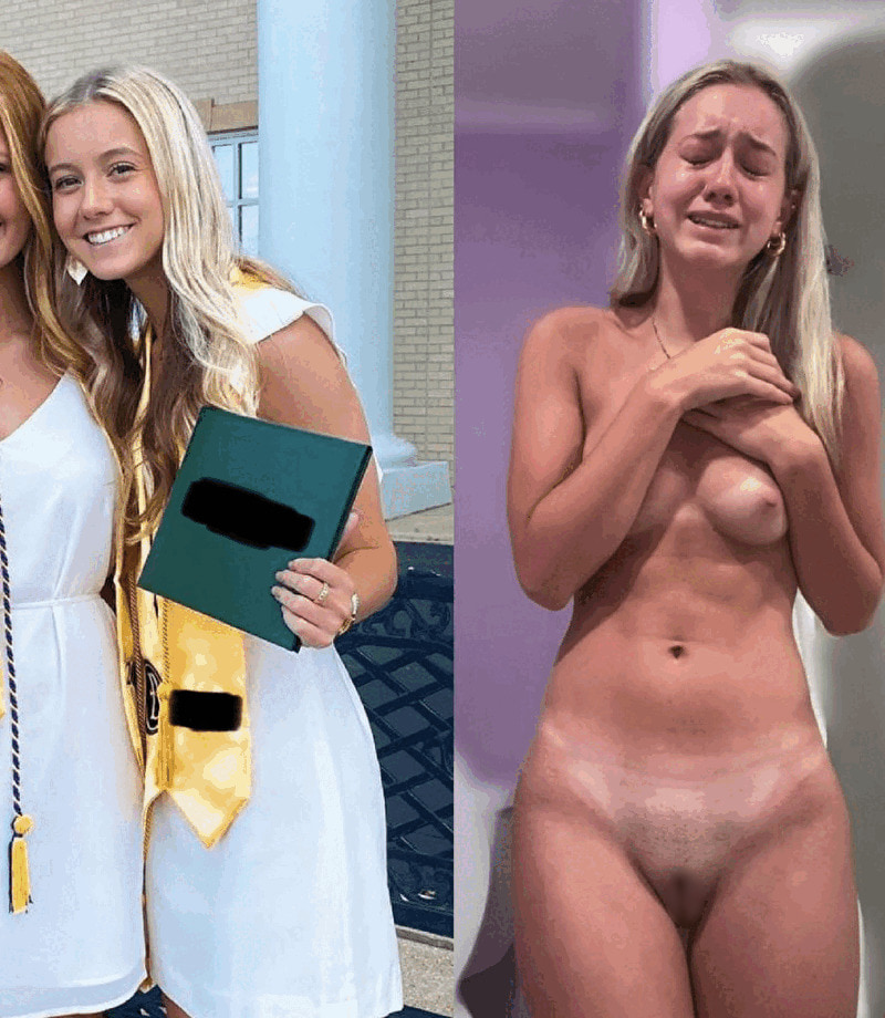 ) 今回は欧米にて、女子大生2人の卒業式 → エロ動画像のビフォーアフター2人分。