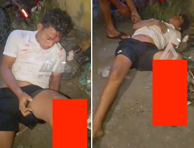 gif_animation ベネズエラにて、バイカー2人が車に突っ込まれ重傷を負った事故現場がヤバすぎる… 動画。1人は恐ろしく破壊された自分の足を何度か見た後に意識を失ったようだ。