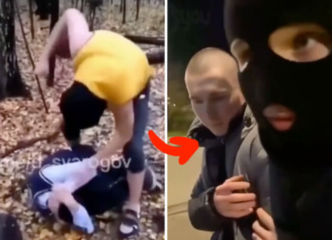 ロシアにて、障害者いじめ動画をアップしたヤンキー高校生が、それを許せなかったロシアンギャング(半グレ?)に特定・襲撃され、”正義の制裁(拷問)” を受けた一連の動画。まさに自業自得・・・。