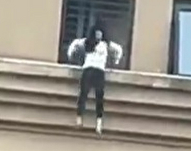 gif_animation 中国にて、昨日撮影された女子高生の自殺動画がヤバすぎる。地面に直撃せず建物(ホテル)の一部に接触したが、どちらにせよ死亡したそう。動機などは不明。