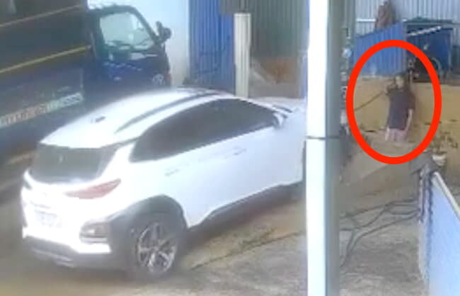 gif_animation ベトナムにて、洗車場の女オーナーが、客の車を誘導中にブレーキとアクセルを踏み間違えた68歳の女性ドライバーによって押し潰され死亡する衝撃の事故の瞬間。