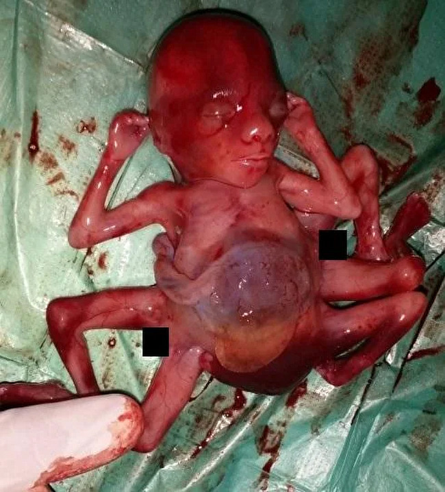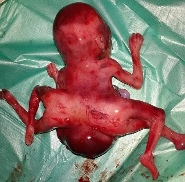 gif_animation インドにて、32歳妊婦が中絶した胎児の姿がまるでメン・イン・ブラックの「イカの赤ちゃん」(※ TOP画)のようだと話題になっているギャラリー。シャム双生児(結合双生児)で通常の2倍の足があった。あまりにもいたたまれない… 5枚。