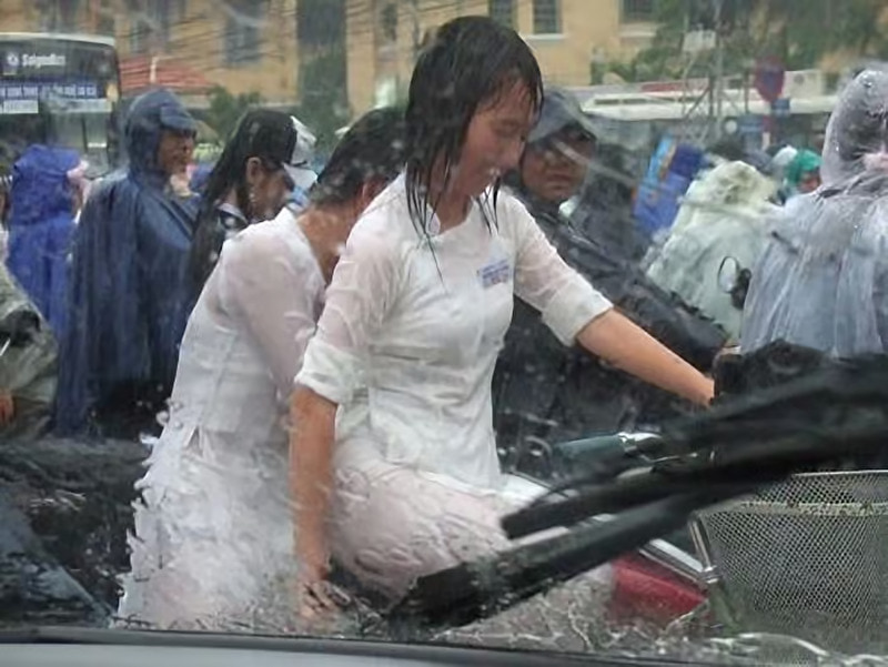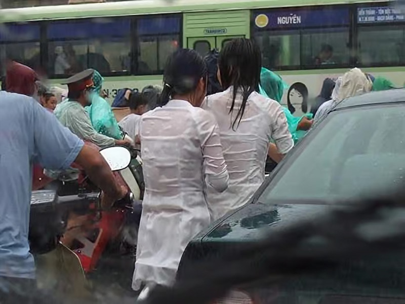 【透け透け】ベトナムのアオザイ女子高生、雨が降った日の画像がエロすぎるwwwwww