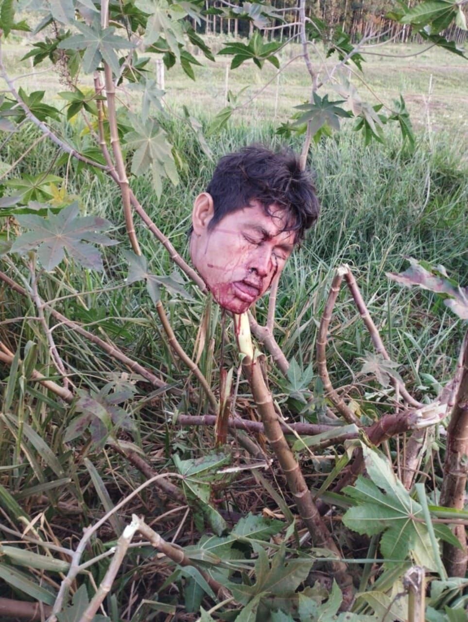 gif_animation ブラジルにて、先住民族の村で「世界初の植物」が発見された、などと現地が騒然となっている恐怖動画。グアラニー族の男性が、土地扮装により別の民族に襲撃・斬首され「生首」を植物に飾られたおぞましい光景が話題になっている模様。