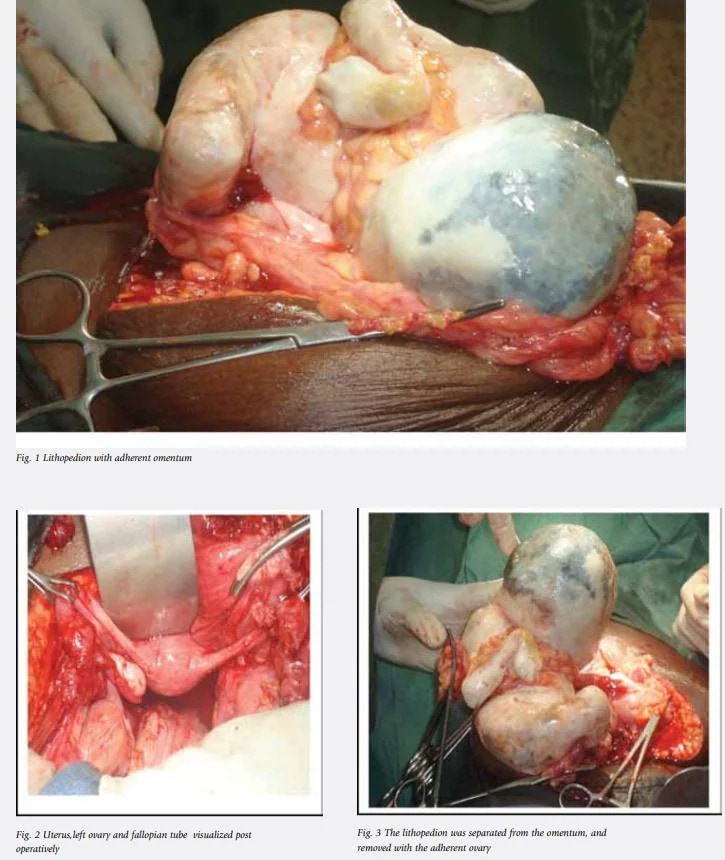 gif_animation ケニアにて、36歳の女性が自然妊娠後に7年間の下腹部膨満の病歴を訴えて来院、検査及び手術の結果、体内から「1400gの石灰化した胎児」が発見された実際の衝撃画像。彼女は経済的な理由で検診を受けていなかったものの、徐々に膨らむお腹に親戚を含め「いつか産まれるだろう」と期待して待っていたとの事。