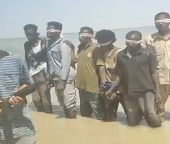 gif_animation 内戦により多数の死者が出ているスーダンにて、戦場から逃げようとした軍事組織の兵士ら6人が、海(浅瀬)でたった12秒で皆殺しにされる動画が怖い…。