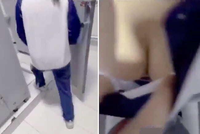 朝のエロ動画。 とある学校のトイレで男子におっぱい揉まれる女子高生の様子が「これはアウトだろ…」と話題になっているもの。無理やり?それともカップル?