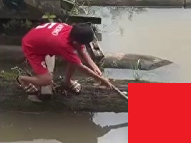 gif_animation インドネシアの川で、小学生ほどの少年たちが遊んでる ”人間の手のようなもの” が「本物(の人間の死体の一部)」であった事が判明し騒動となっている動画。彼らは笑っているが、この時はまさか本物だとは思っていなかっただろう。