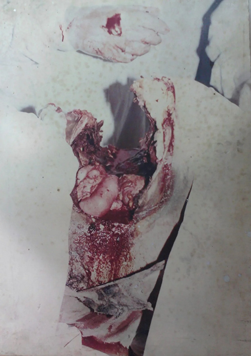 gif_animation 古い画像ですが1988年、アフガニスタンで弾薬庫が爆発。飛び散ったロケット弾や他弾薬によって93人以上が死亡、1100人以上が負傷した通称 ”オジュリキャンプの惨事” 。その中で、ミサイルが突き刺さった後 手術を受け、その後36時間だけ生き続けた死者の一人の画像がヤバすぎだろ・・・と話題に。[4]images