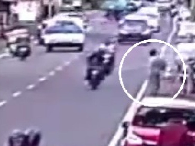 gif_animation インドネシアにて、バイカーが運転中キチガイ(男)に横から体当たりされ、激しくクラッシュしその後死亡するありえない事故映像。男はそのまま逃走している。