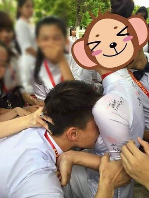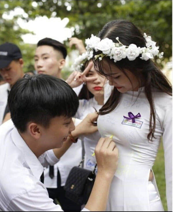 ※ 参考画像 : ベトナムの高校の卒業式でアオザイにメッセージを書き込む生徒たち