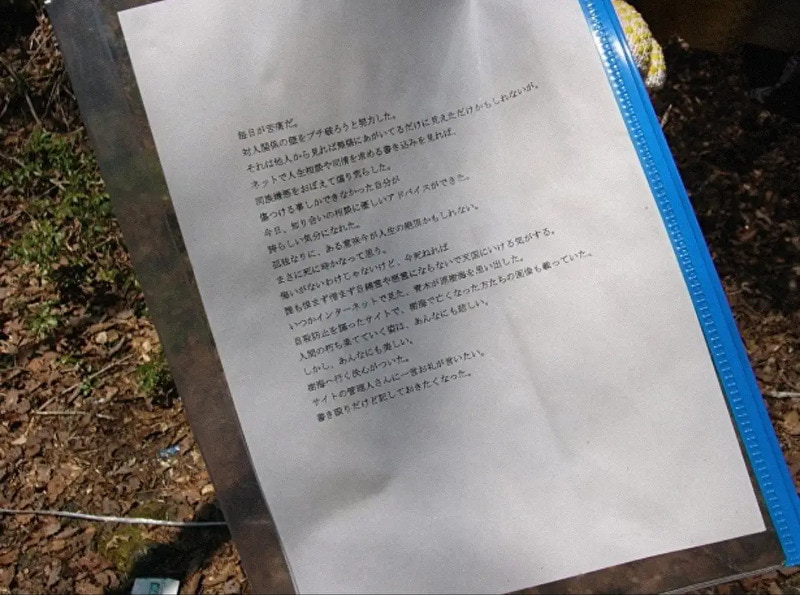 【閲覧注意】青木ヶ原樹海の自殺女性の横にあったメモ、あまりにも闇が深すぎる(画像あり)