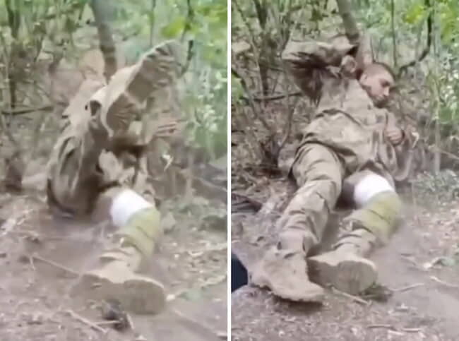 gif_animation ロシアVSウクライナの戦場で、致死率ほぼ100%のウイルス「狂犬病」に感染したウクライナ兵士が別の兵士に射殺される瞬間。兵士自身もそれを望んでいたとの事。