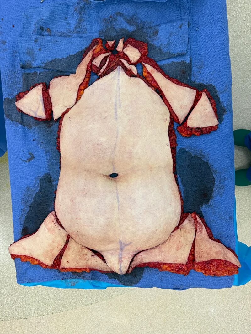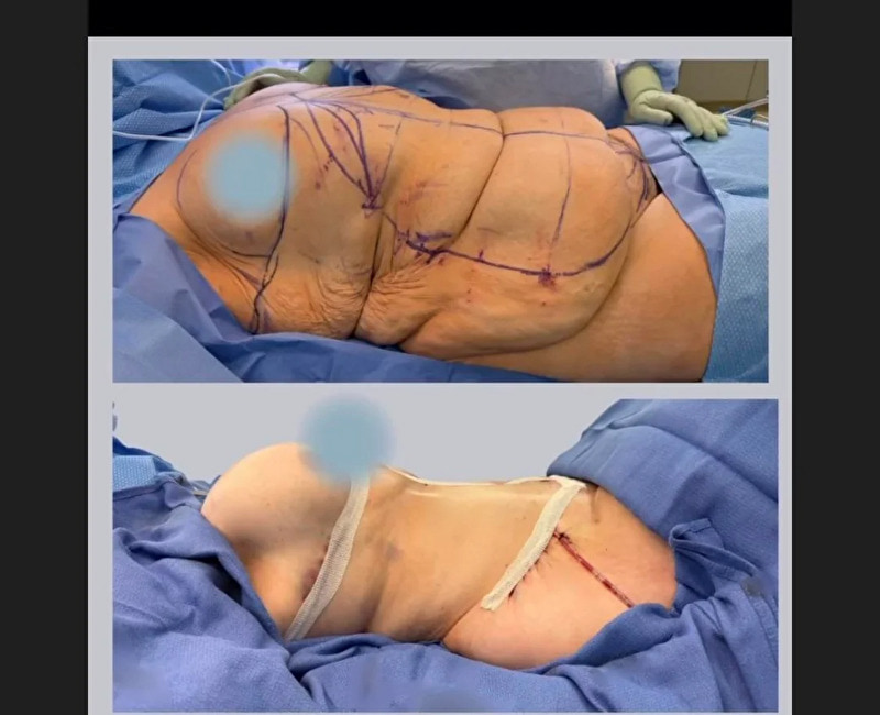 gif_animation 海外の医療系のサイトで「麻薬カルテルに生きたまま解体されたとしか思えない」「シリアルキラーの殺人現場かと思った」などネットを騒然とさせている、美容整形後の女性の ”切れ端” 画像が話題に。約7kgものたるんだ皮膚を除去し、繋ぎ合わせたようだ。かなり【閲覧注意】な1枚目と、ビフォーアフター。