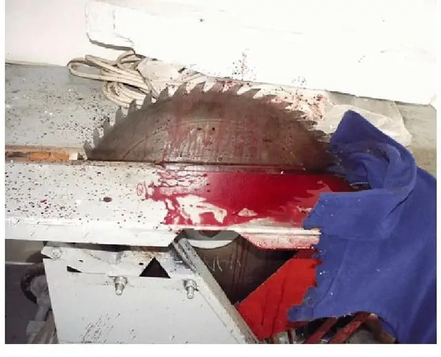 gif_animation とある小さな工場で、電動丸ノコで作業してたはずの女性作業員が「エゲツナイ姿」になり発見される衝撃画像。理由は不明だが、この66歳の女性作業員は自殺を図ったとみられる。喉は酷く裂かれ、死因は失血死であった。