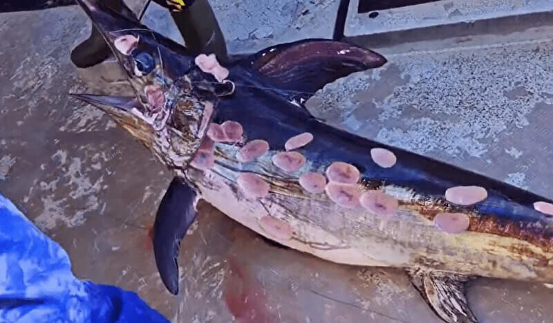 ※ クッキーカッターシャーク(ダルマザメ)に襲われたカジキ