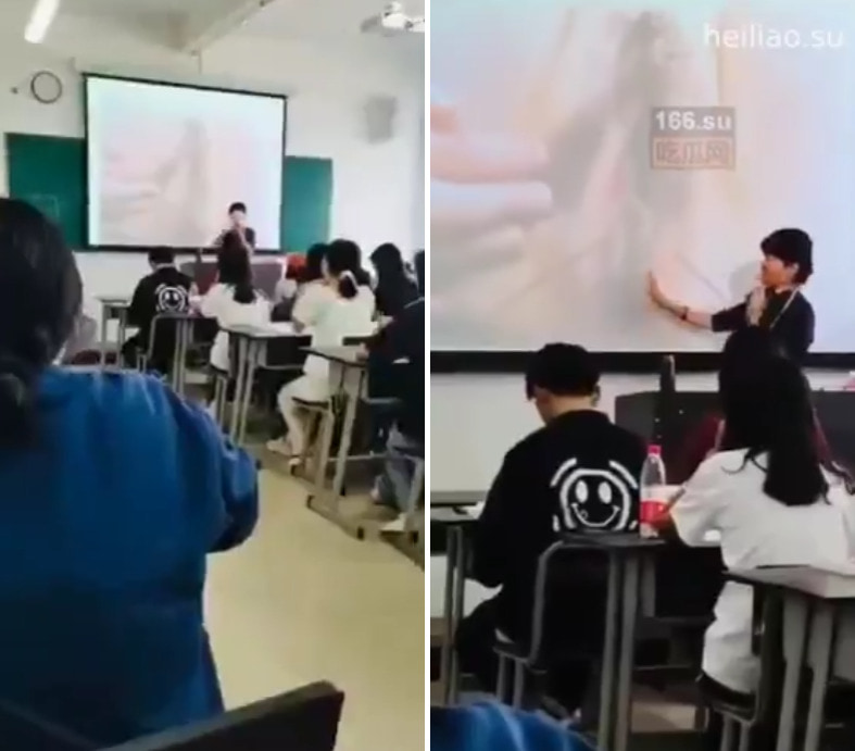 アジアサイトにて、最近の中学校の性教育の授業がやばすぎる…話題。無修正マンコが大画面に映し出され、女子も男子もそれを見ながら、女教師の説明を真面目に聞いている。マンコ部分はさすがにモザイク済み。