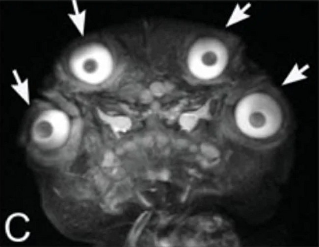 gif_animation 海外ショッキングサイトにて、とあるレントゲン写真の人間(目が4つある)の ”実際の姿” があまりにもヤバすぎる、いたたまれないとして話題になった画像。26歳の白人女性が妊娠した胎児は奇形であり、中絶が行われた。