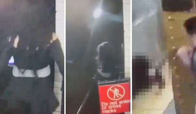 gif_animation 海外ショッキングサイト上で「何度見てもヤバイ」と再燃していた、駅のホームで線路上に降り小便中に電車が来て ”グルグル巻き” にされ死亡する女の動画・・・