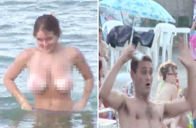 一般の海水浴場に「おっぱい丸出し美女」を放流する海外のドッキリ番組、エロすぎるwww