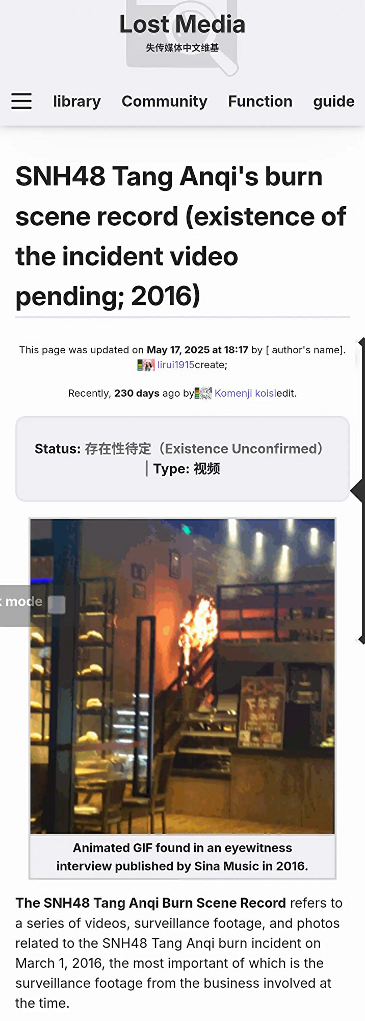 海外ショッキングサイトにて、2016年、上海市内のカフェで全身に大やけどを負う事故に遭った美少女アイドル、SNH48の「唐安琪(タン・アンチー)」の燃え盛る動画などが「今見ても物凄いニュースだ」と話題になっていたのでまとめ。事故後の画像は包帯が巻かれている姿のみで、直近の姿は公開されていない。