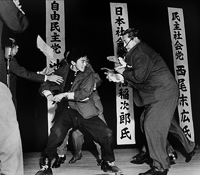 浅沼稲次郎暗殺事件とは、1960年10月12日、東京都千代田区にある日比谷公会堂において、演説中の日本社会党委員長・浅沼稲次郎が、17歳の右翼少年・山口二矢に暗殺されたテロ事件である。
