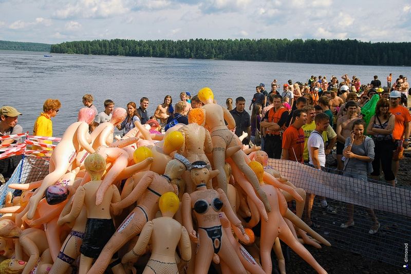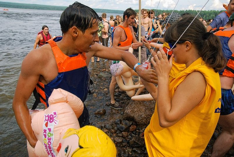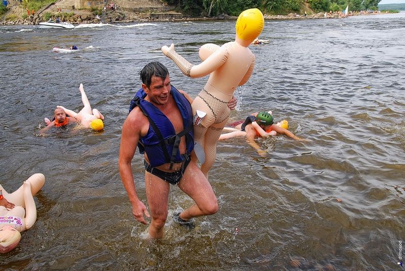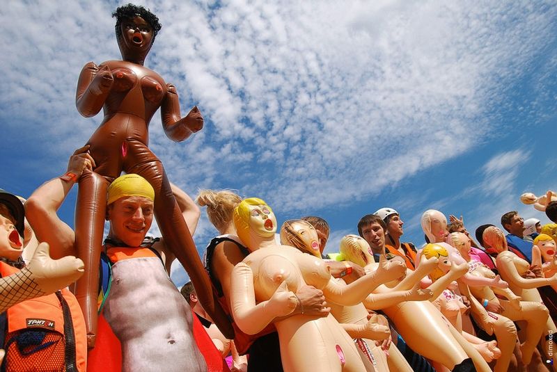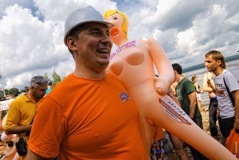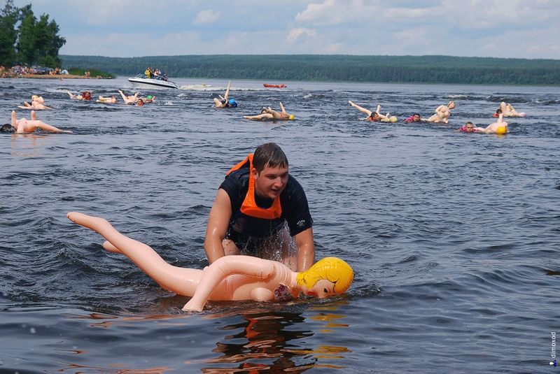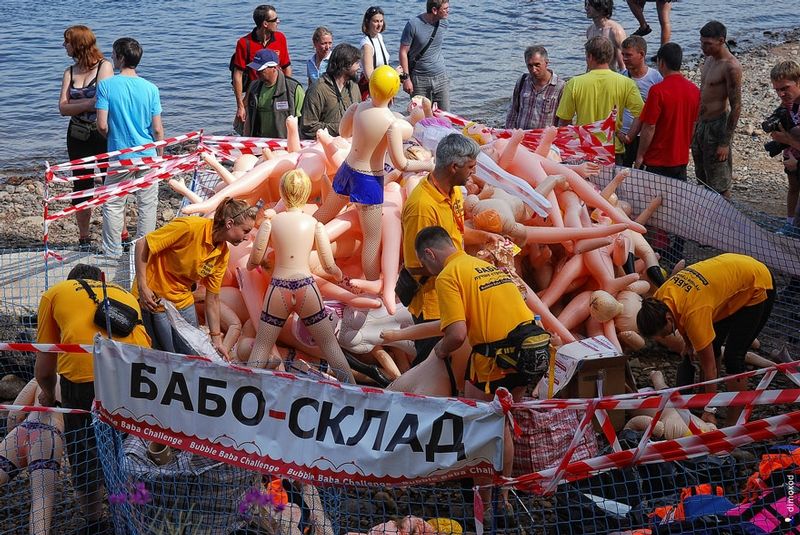 8月6日、ロシアのサンクトペテルブルグにある川で、毎年恒例の水泳大会「Bubble Baba Challenge 2011」が開かれた。【ダッチワイフ】と一緒に泳ぐこの大会、今年は800人以上もの参加者が集まった。