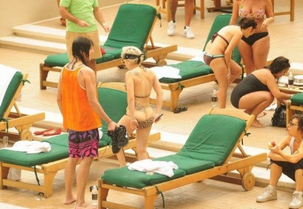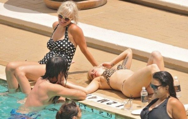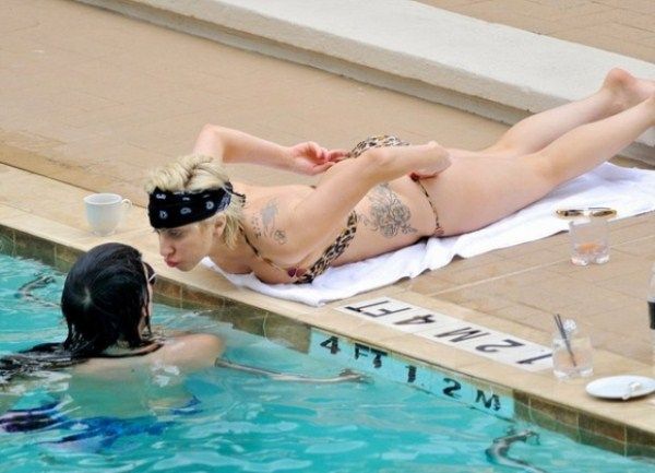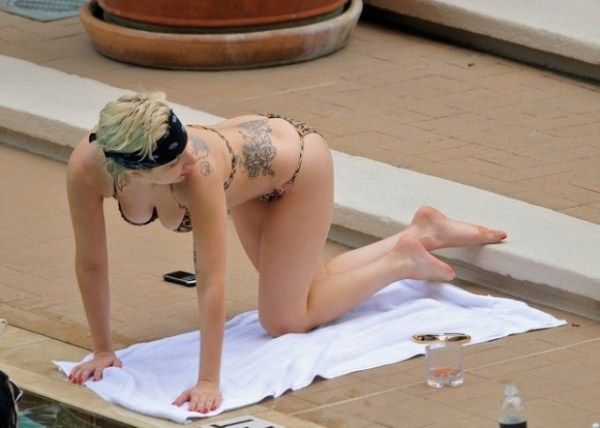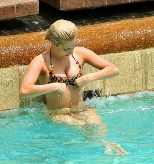 プールで遊んでいるプライベートの【レディー・ガガ】。ばっちり「パパラッチ」されています。