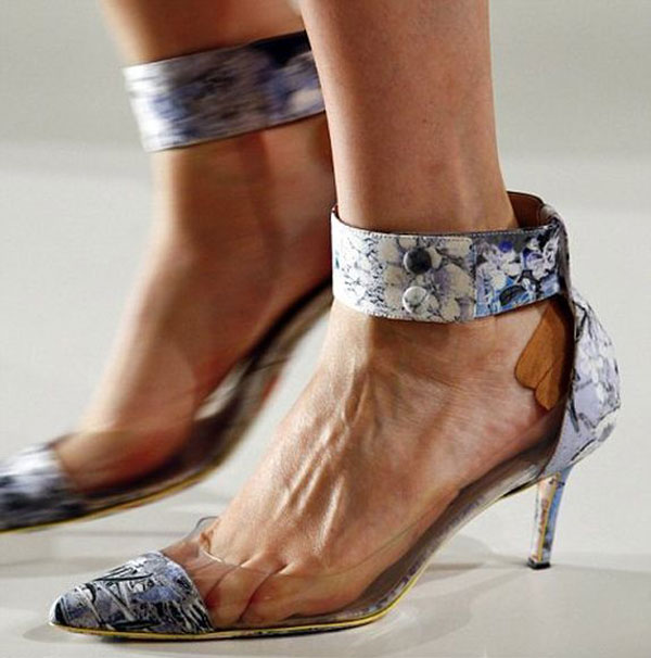この3枚の写真は「同じデザイナー」が作った靴を履いているモデルさん達の足です。下2枚の写真は色々なファッションショーでウォーキングをし続け、1か月が経過したもの。足が変色してえらい事になってます。