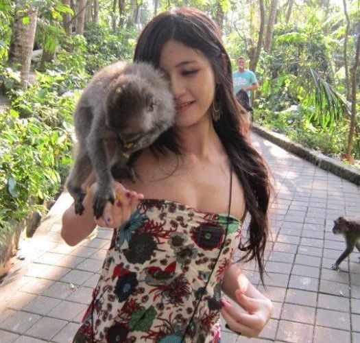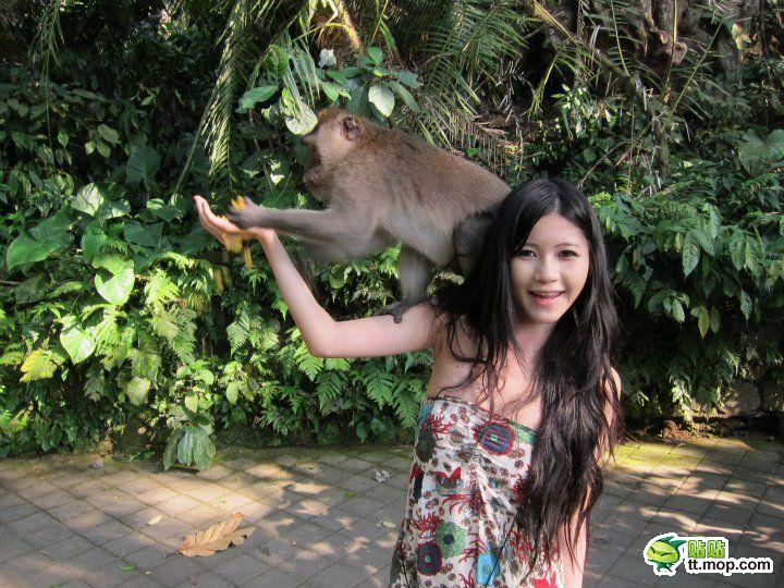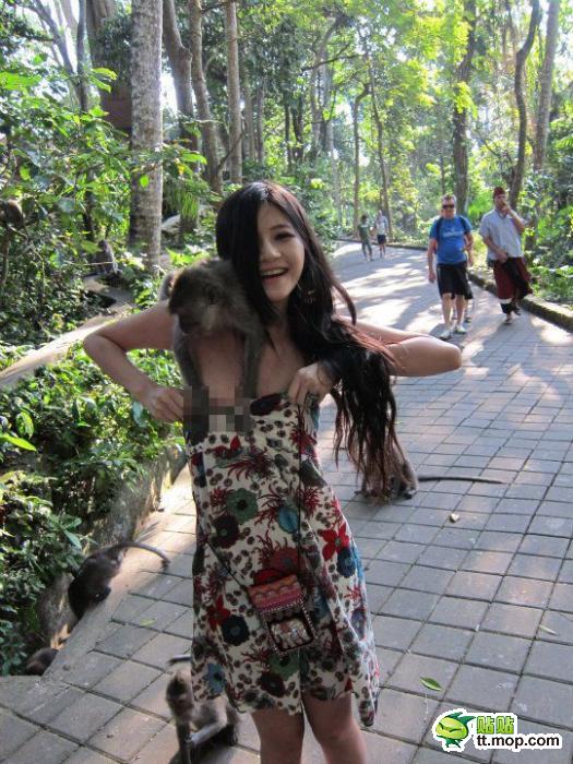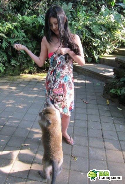 【写真撮影】美女がサルに服を引っ張られ、ポロリしてしまう。[6]images