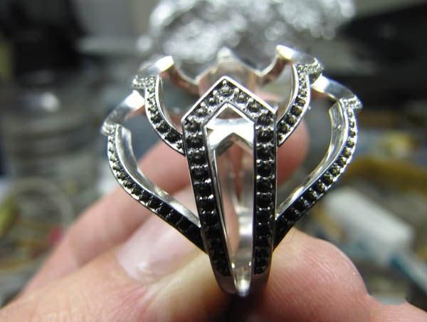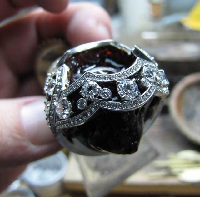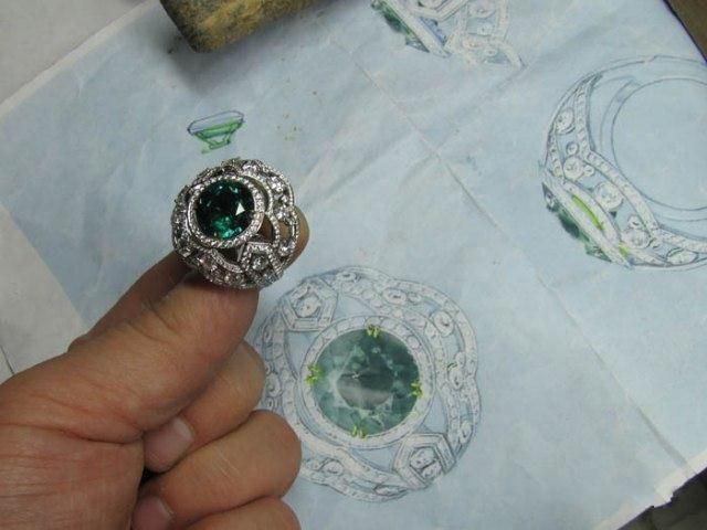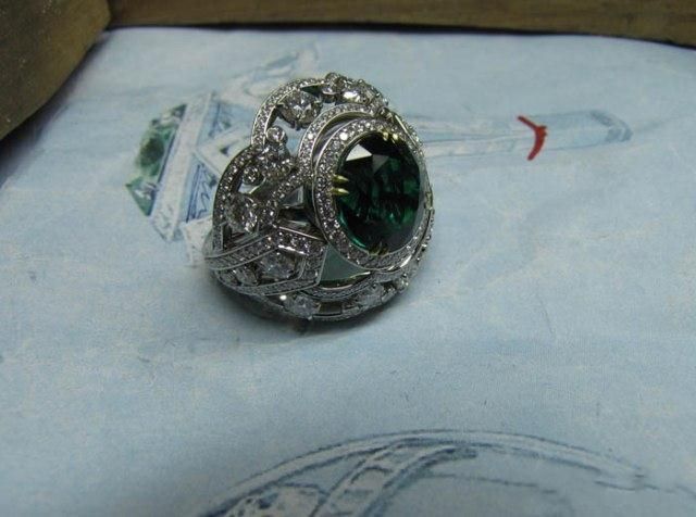 そのお値段、125万ドル(今現在、日本円で約9750万円ぐらい)。至る所にダイヤモンドがちりばめられ、中央には13カラットのエメラルドが「どかん!」と乗っかったこの指輪が徐々に出来上がっていく様子を、18枚の写真で。