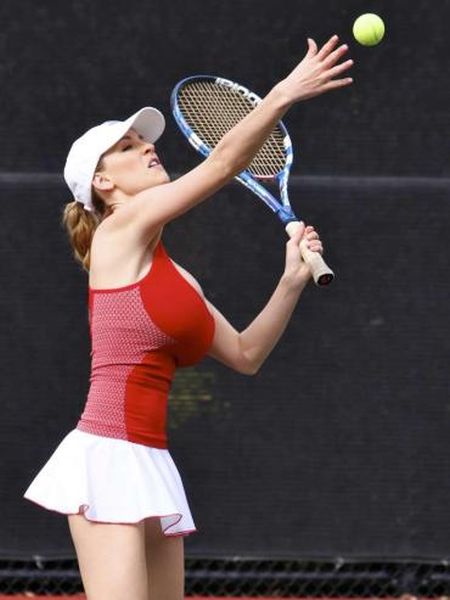 gif_animation アメリカのドイツ人モデル「ヨルダン・カーバー」がテニスのコスプレでグラビア撮影。タンクトップはち切れそうなぐらい爆乳。[15]images