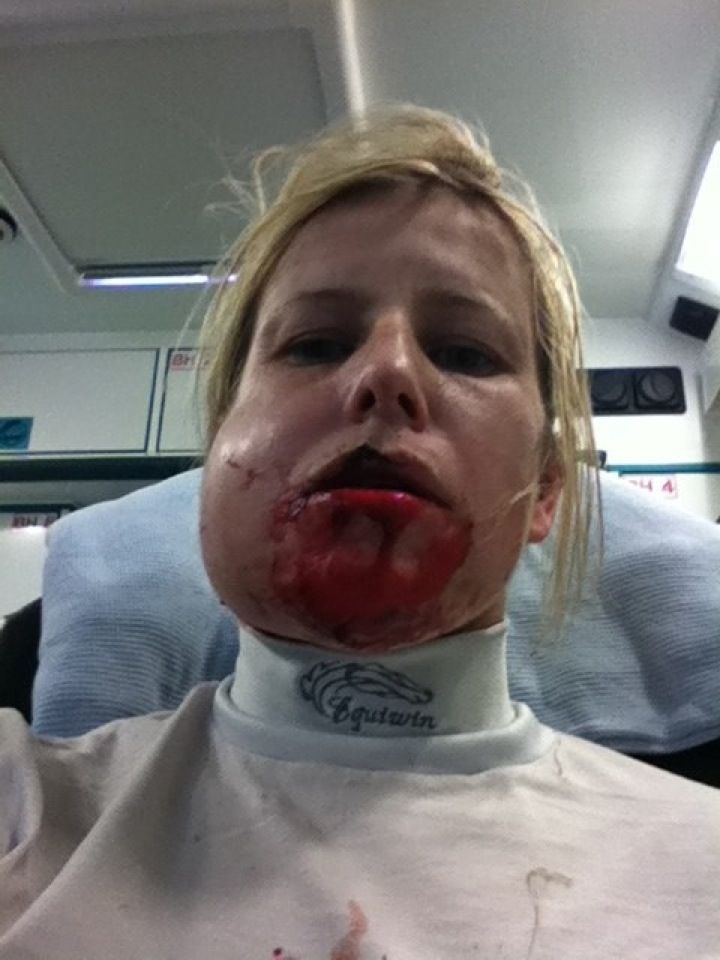 ↓ 馬に蹴られた「キャシー・ギャノン」、その後の顔写真