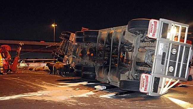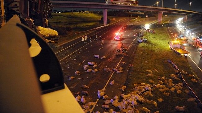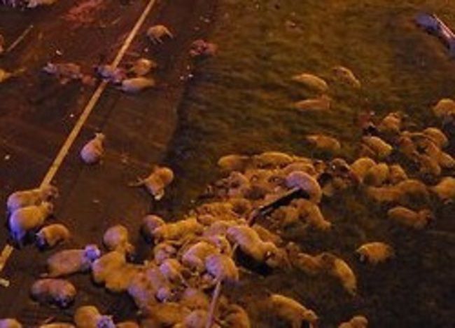 「我々が上を見上げた時、偶然にもトラックの事故の瞬間を見る事が出来た。トラックが横転するや否や、上から大量の羊が雨のように降ってきた。」