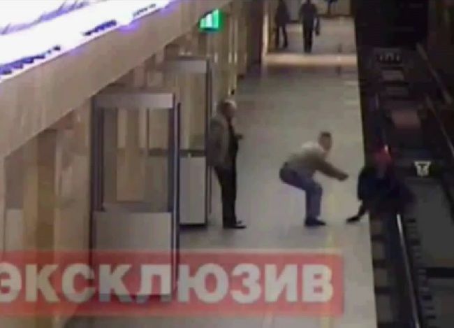 [ロシア]女性を地下鉄のホームから突き落とす謎の男