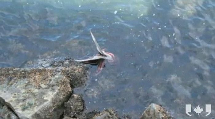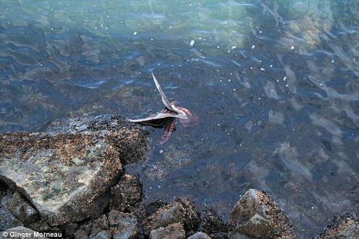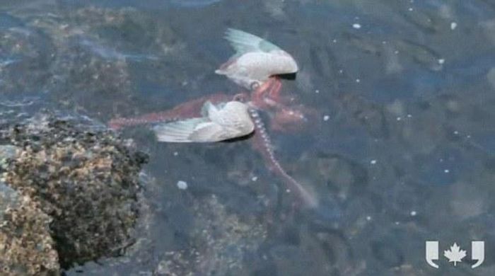 ↓ ペリカンを食べるタコ