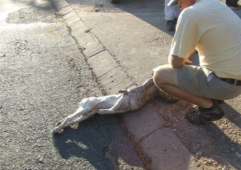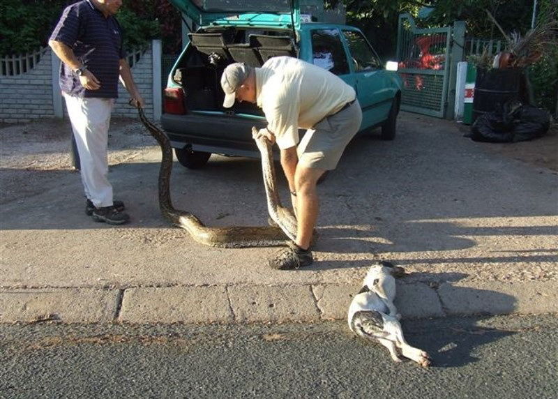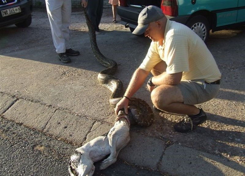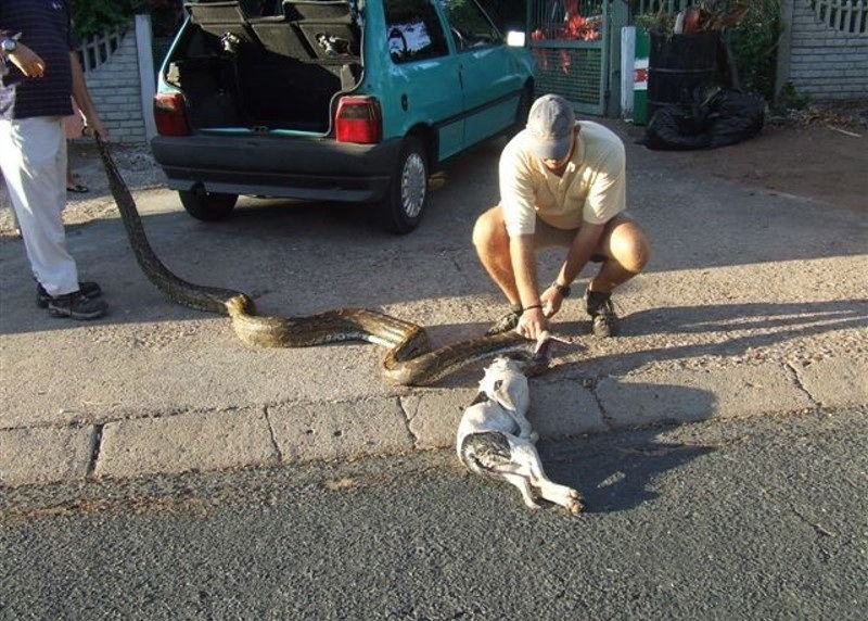 ↓ イヌを食べるヘビ