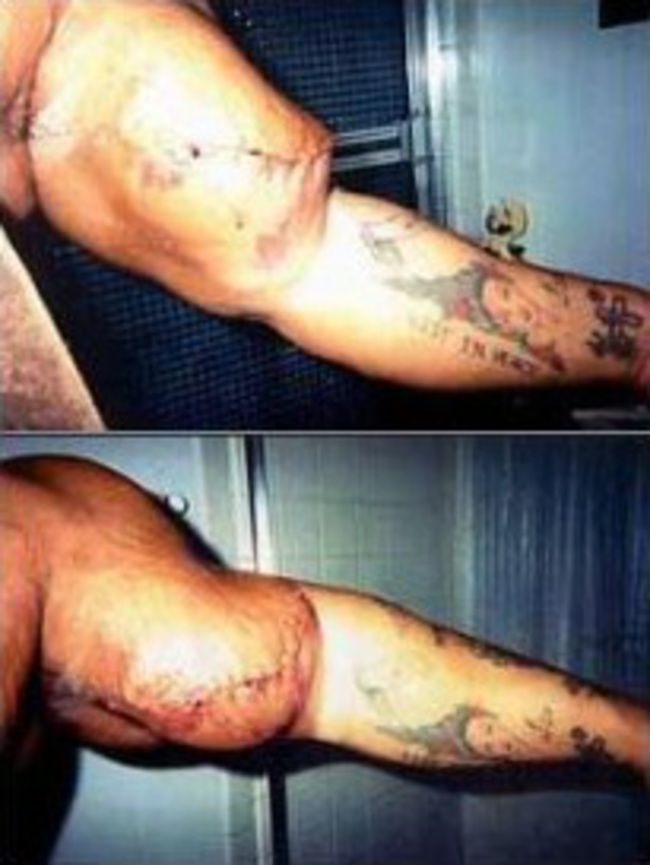 さらに彼(グレッグ)はシントールを打ちこんだ腕にナイフで切り込みを入れ、自分の理想とする筋肉のラインを作り上げているという。