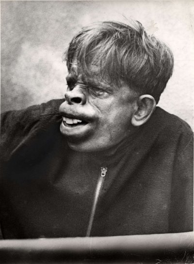 可能性 ⇒「人間の奇形」「特殊メイク(フェイク)」「猿人(フェイクではない)」。1937年にブラジルのジャングルで発見された「猿人」の写真。[3]images